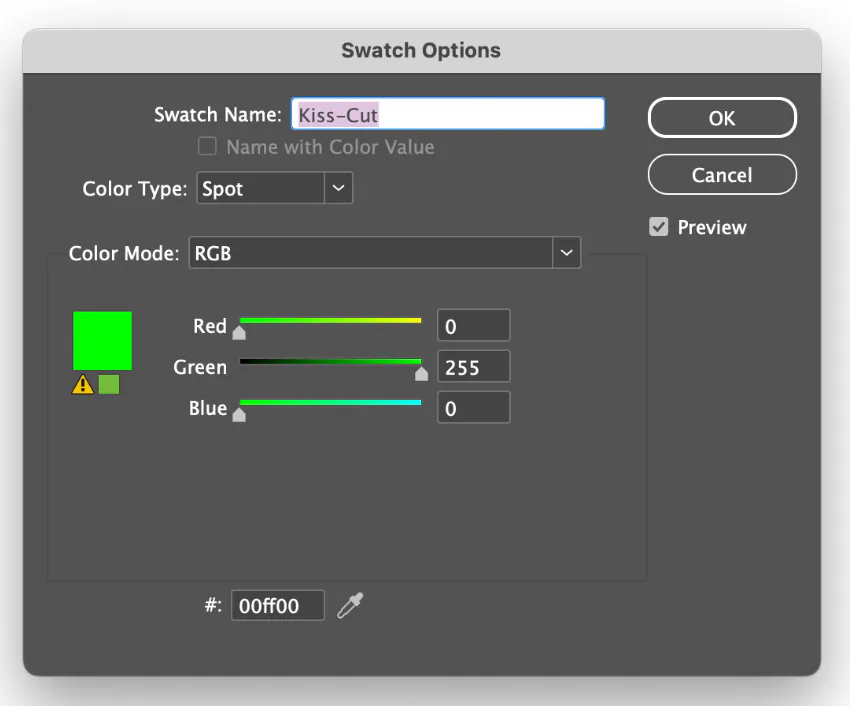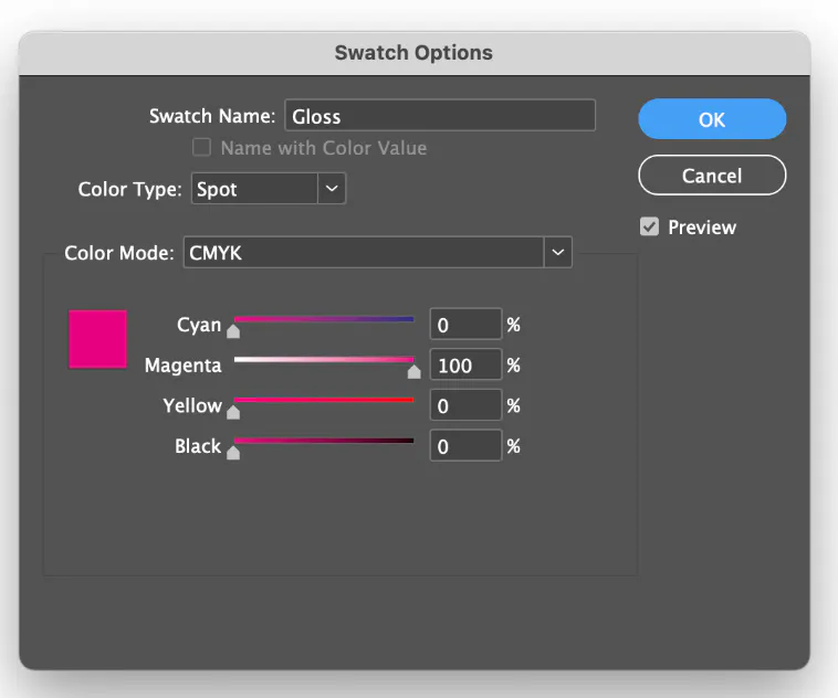 2. Raised UV elements need to be on a raised UV layer and set up with the specific spot color: